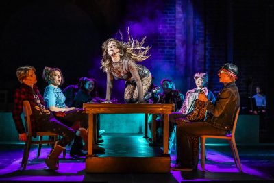 „Rent“ ist ein Rock-Musical. Es lebt von Drums, E-Gitarre und musikalischer Kraft. Leider wurde die Band hinter einer offenbar sehr dicken Plexiglaswand im hinteren Teil der Bühne verbannt, so dass im Saal nur ein Bruchteil dessen ankommt, was diese Show zu transportieren im Stand ist. Erschwerend kommt hinzu, dass es trotz des akustischen „Wegsperrens“ der Musiker, nicht gelingt, Gesang und Musik zu auszusteuern, dass man die Darsteller:innen verstehen kann. Allzuoft geht der Gesang im musikalischen Wattesound unter. Leider ist aber auch dieses Phänomen in Lüneburg nicht neu und schon in früheren Jahren mehrfach negativ aufgefallen.